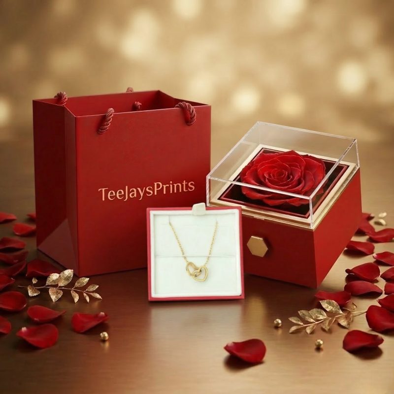 Eternal Real Rose Rotating box Double Heart Custom Engraved Name Steel Necklace