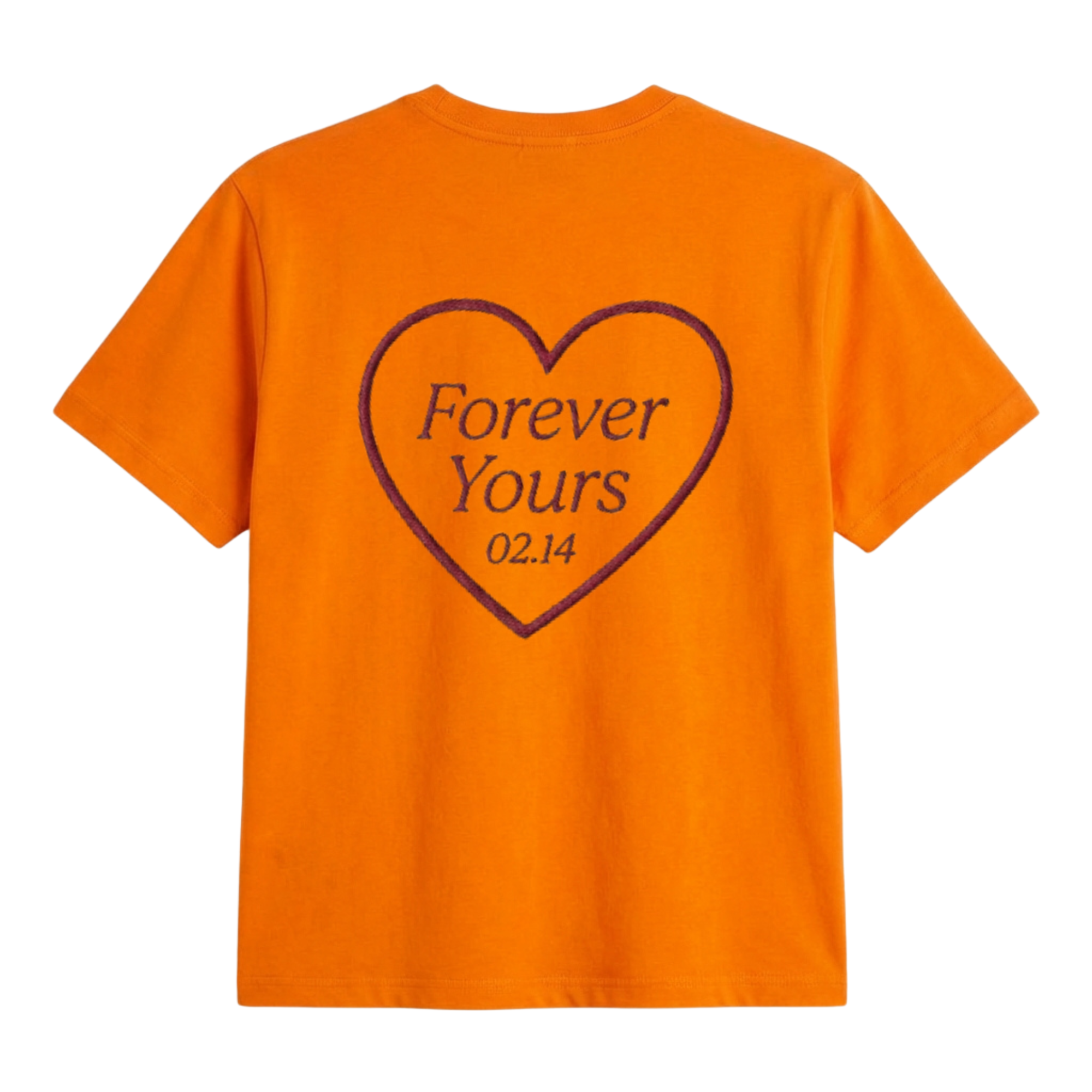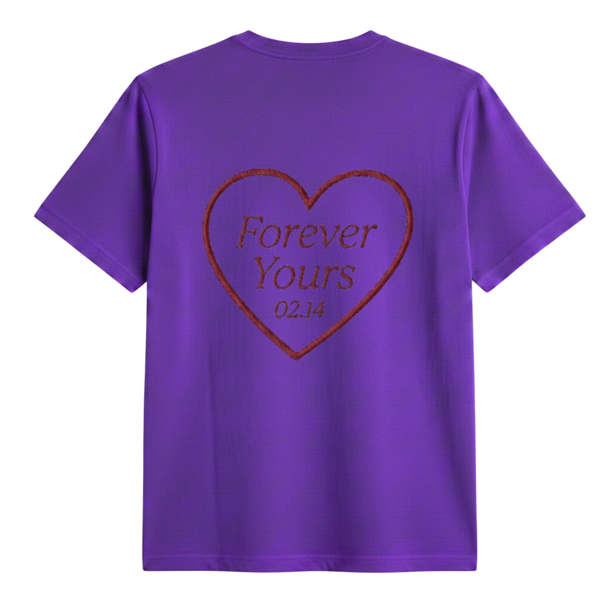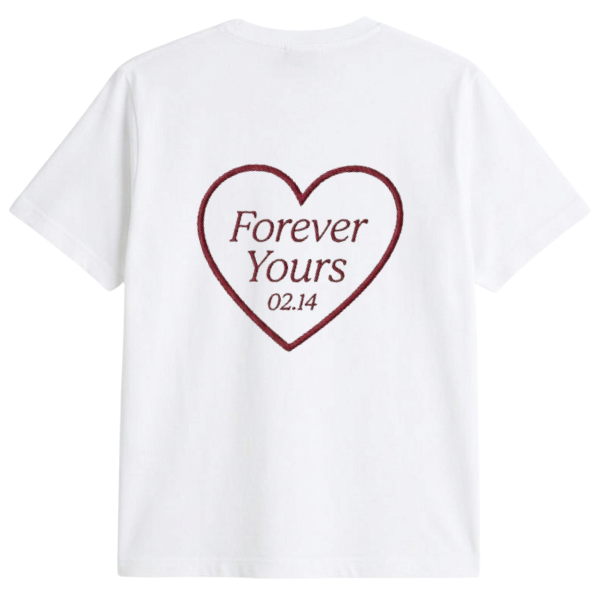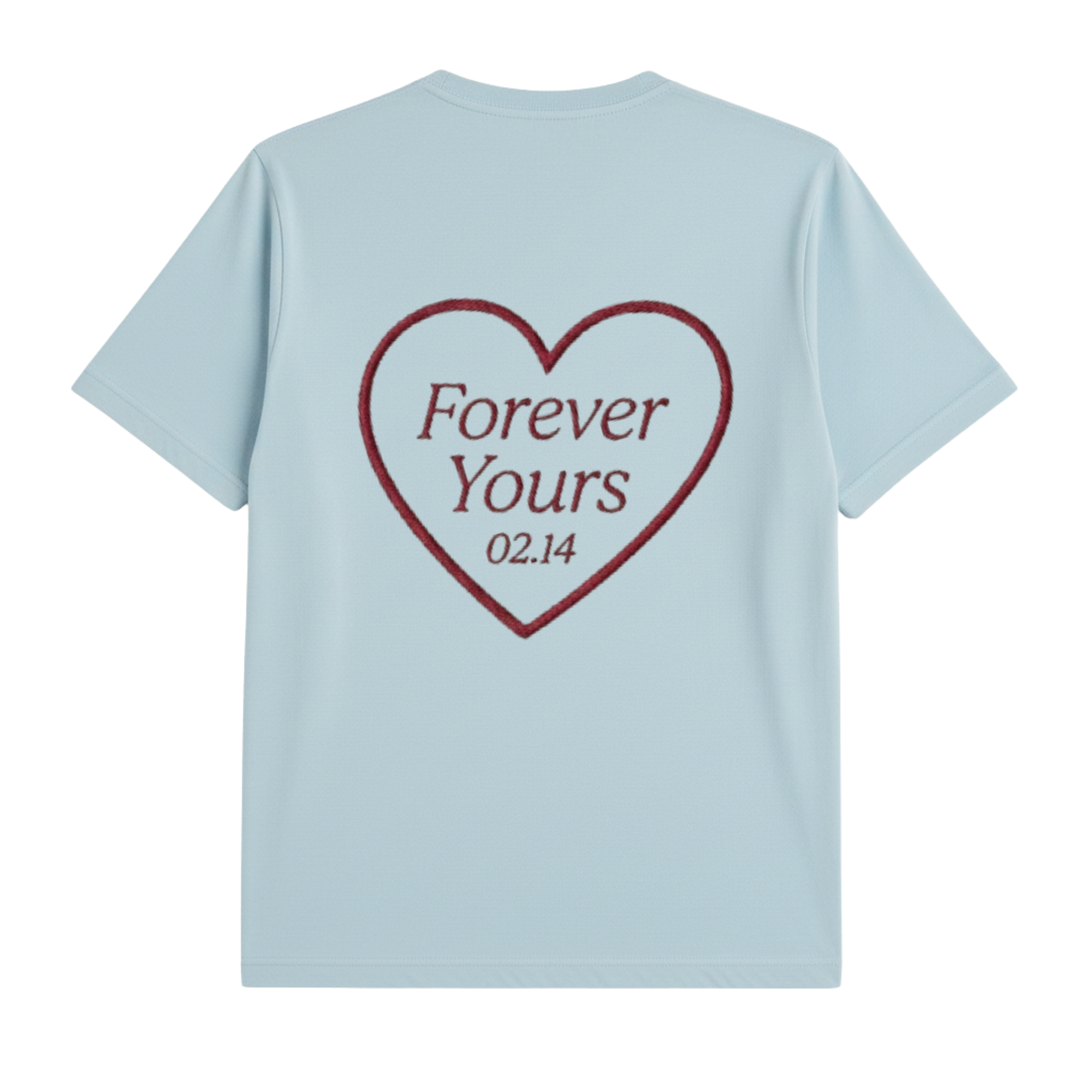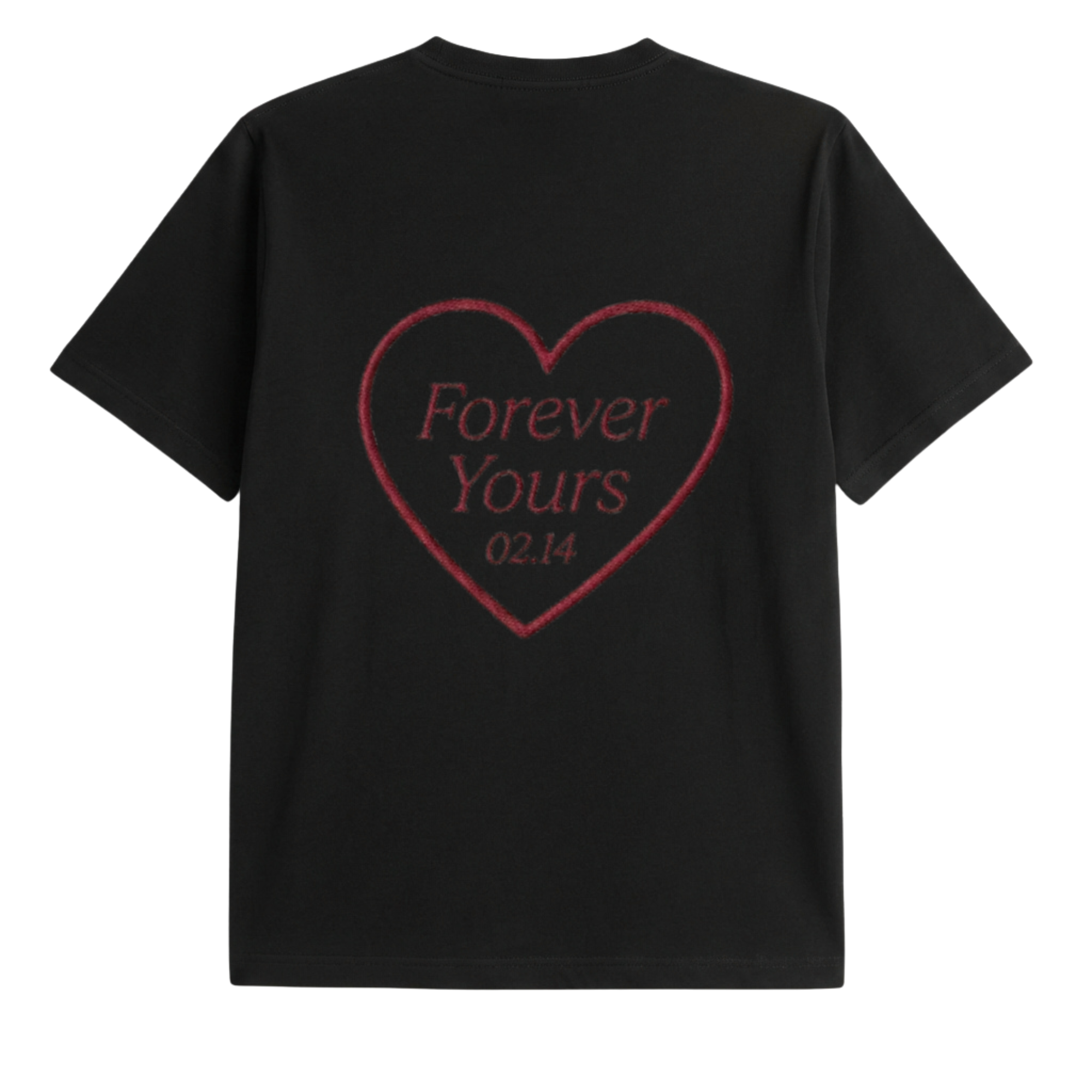 “Forever Yours – 02.14” is more than just a T-shirt—it marks a serious, lasting love.