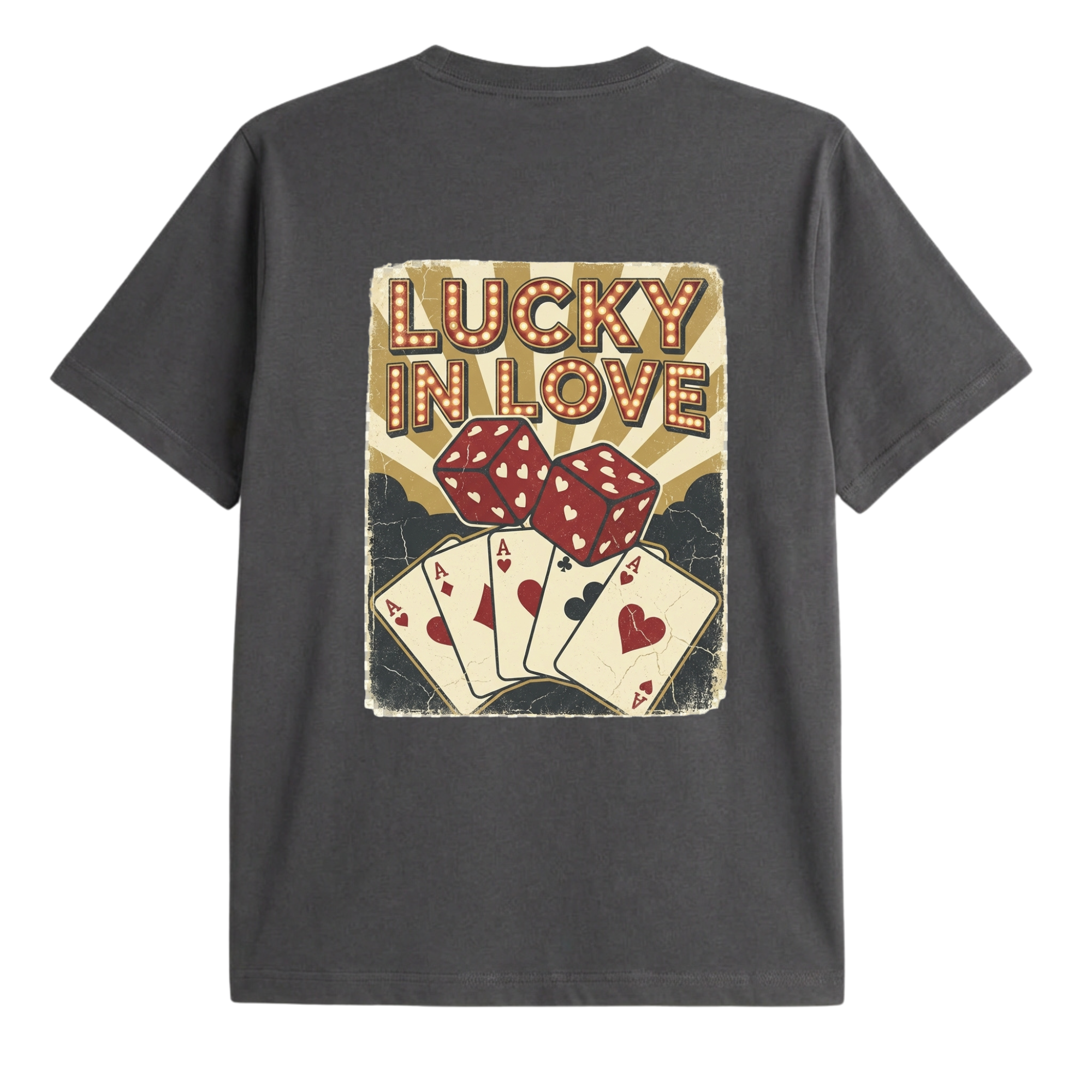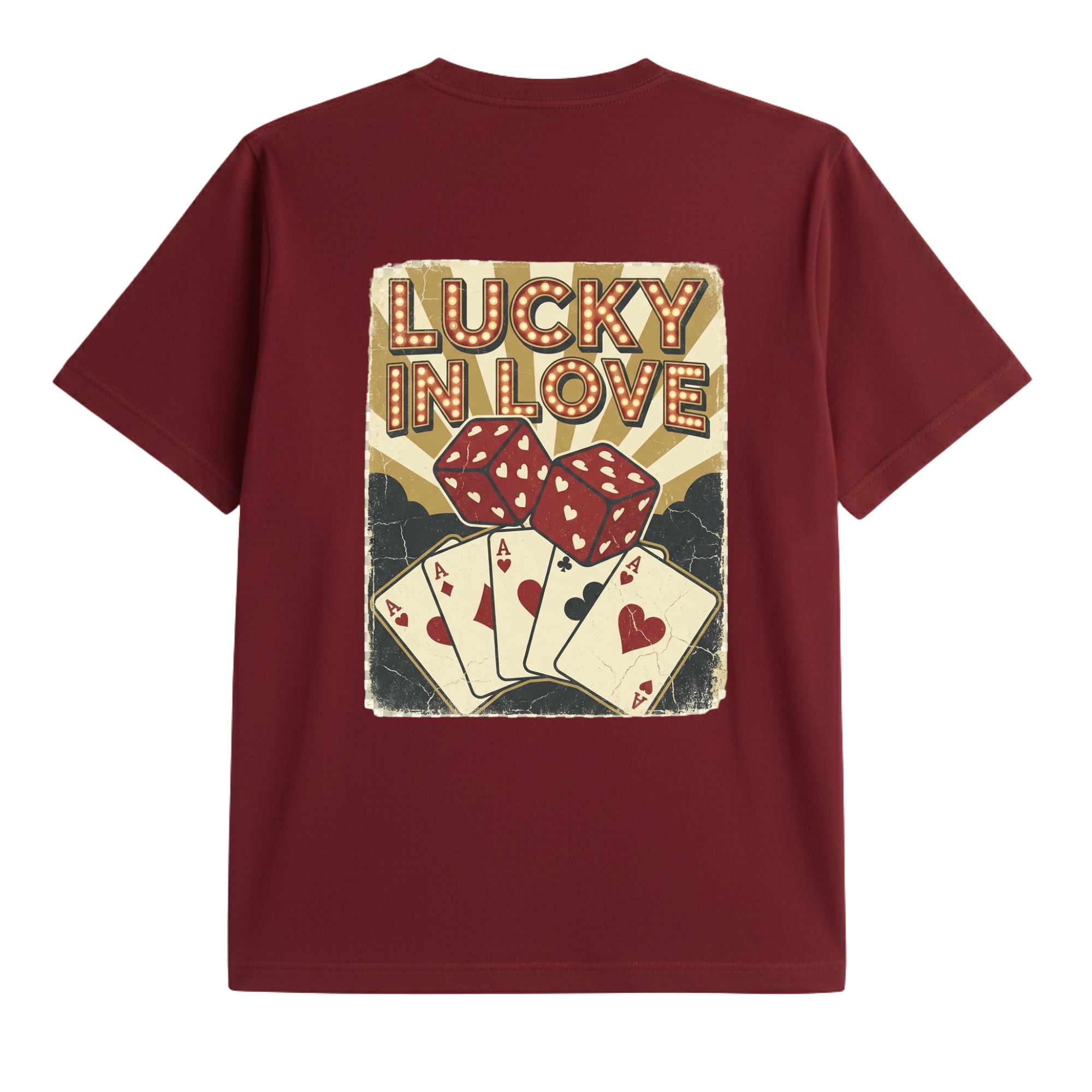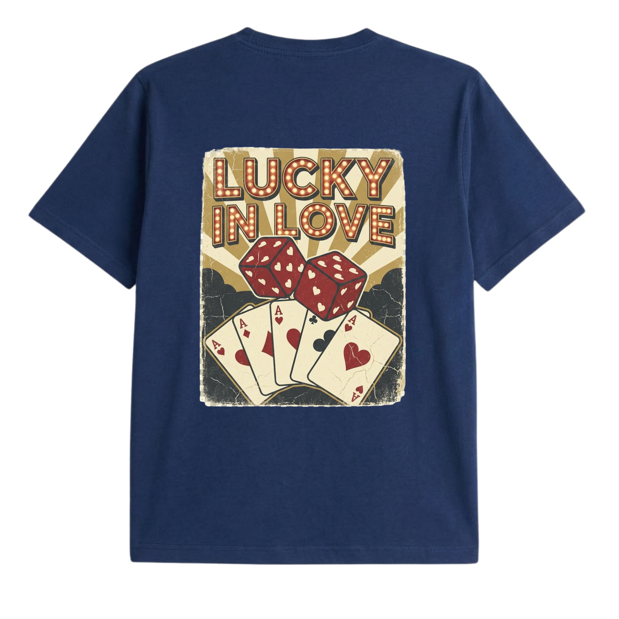 Featuring vintage-style dice and a winning hand of aces, this design captures the thrill of risking it all for love. Whether you’re single, taken, or just in love with the game, this tee says one thing loud and clear: when it comes to love, you play to win.